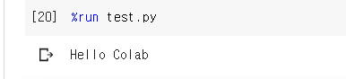 test.py 파일이 실행되어 Hello Colab 이 출력된 것을 볼 수 있다.