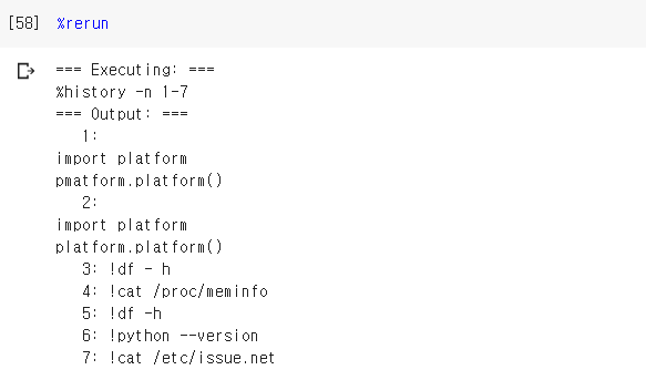 %rerun : 명령어 사용 바로 직전 입력 이력을 실행시킨다.