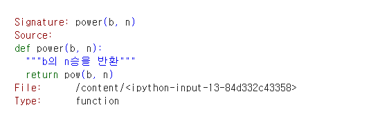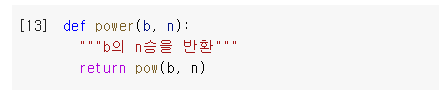 def 커맨드로 power() 커멘드를 임의로 """b의 n승을 반환""" 이라 정의내렸다.