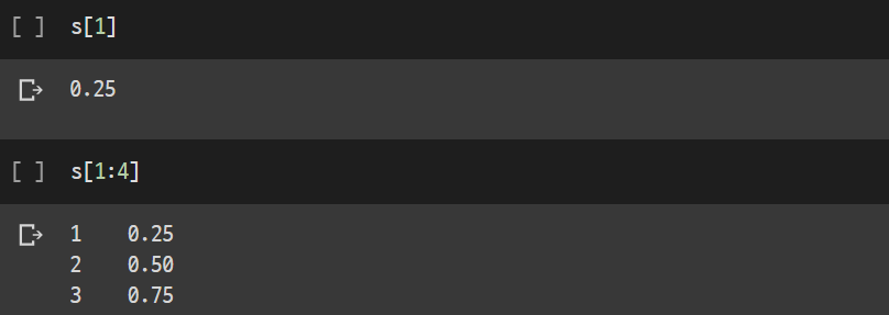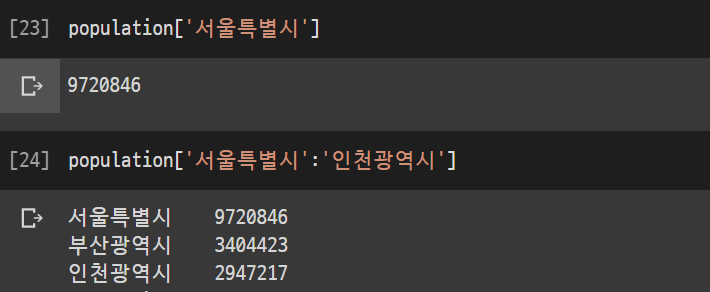 마찬가지로 새롭게 지정된 인덱스를 통해 개별 호출과 슬라이싱을 이용한 호출도 가능하다.