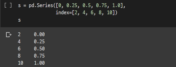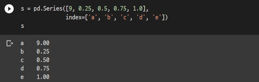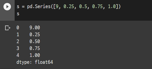 그리고 Series는 Python의 list [ ] 나 Numpy의 array 가 인자로 입력된다.