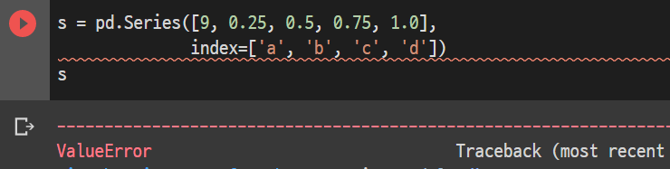Series를 정의할 때 대소문자 구분을 확실히 해줘야 하며, 앞에 pd. 을 붙여서 Pandas 호출을 꼭 해주어야 한다.