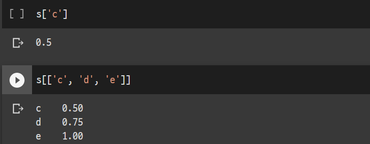 * 'c' index에 매칭 되는 값을 호출하고 'c', 'd', 'e'를 동시에 호출하였다.