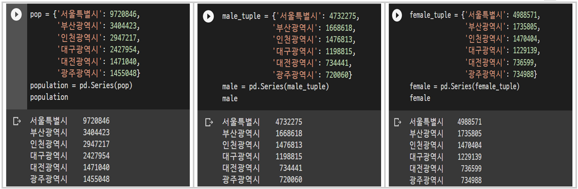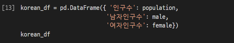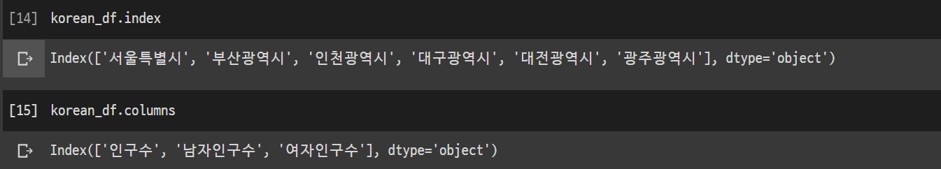 column이 정해져(인구 주체) index는 기존 Series에서 index 역할을 하던 지역이 그대로 index를 이어받았다.