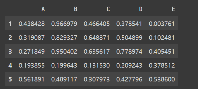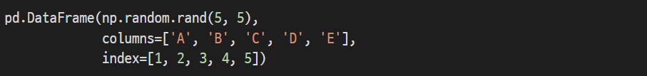 앞서 미리 호출해 두었던 Numpy를 이용하여 DataFrame을 구성할 값들을 랜덤 하게 준비하고