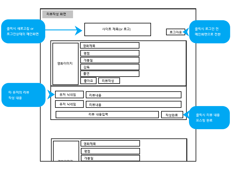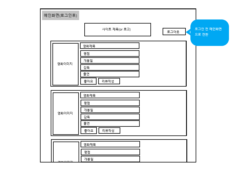 설명 : 현재 상영중인 영화들의 정보를 확인할 수 있고 로그인을 통해 좋아요와 리뷰작성을 할 수 있는 웹페이지입니다.