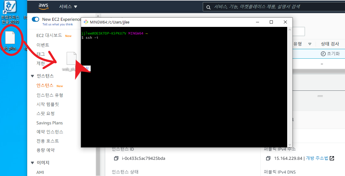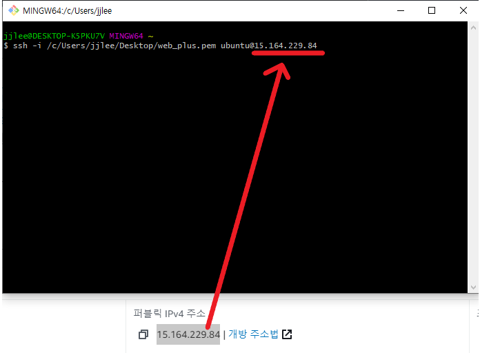 1. ssh -i [키페어 드래그 앤 드롭] ubuntu@[퍼블릭IPv4 주소 입력]