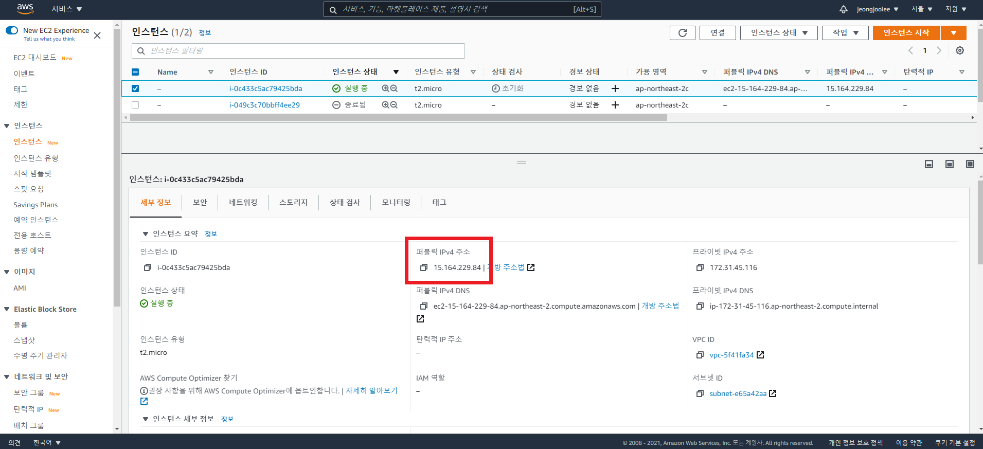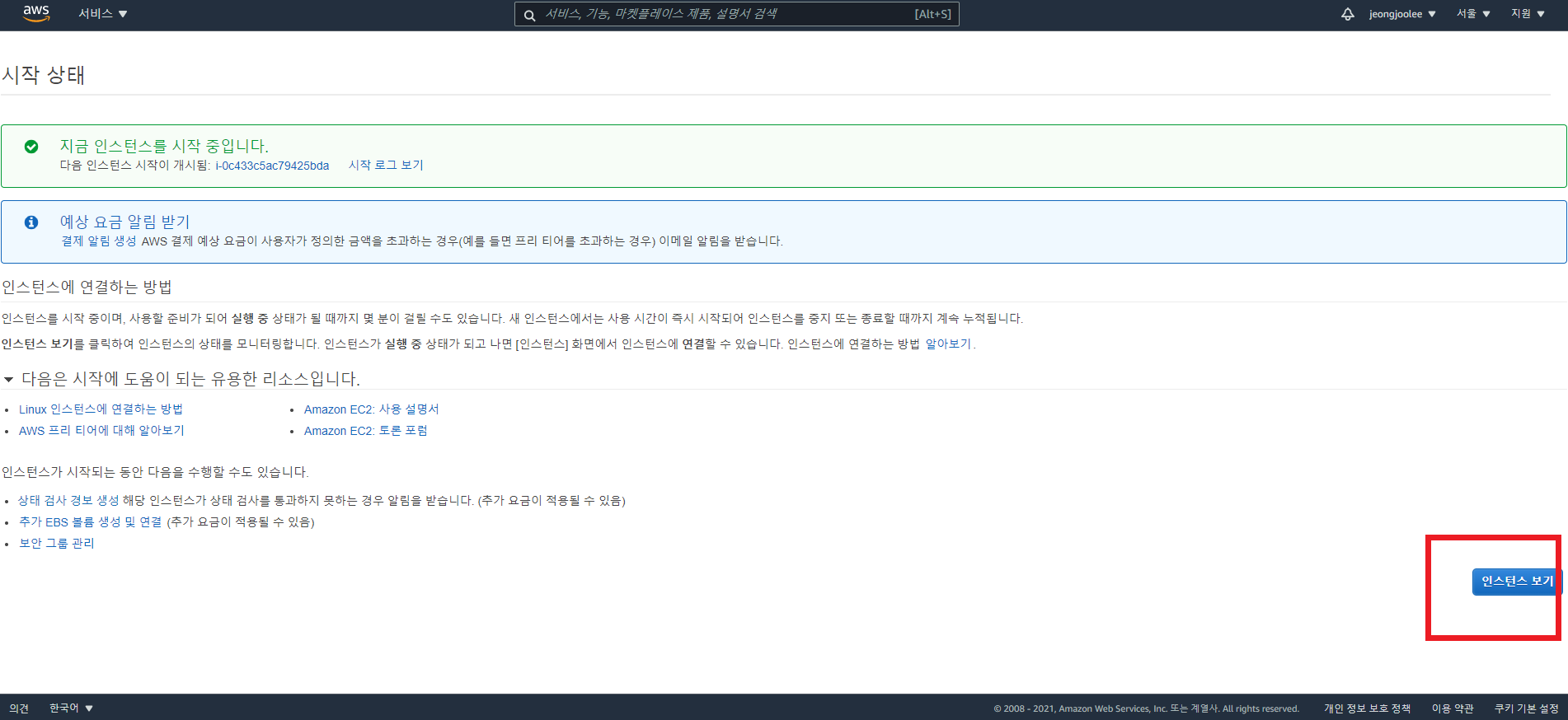 실행 중이라고 떠있는 인스턴스가 보인다면 정상작동 중인 것이다.