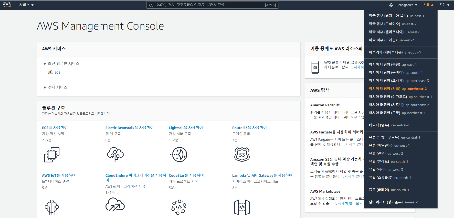 우린 한국에서 프로젝트를 배포할꺼니까 '서울'로 되어있는지 확인한다.