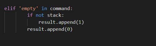 if not stack 부분과 가장 마지막 줄은 그냥 별개의 코드이다. 같은 조건문으로서 연결되어있는 것이 아니다. 단순히 if문이 끝나면 순번대로 이어서 실행되는 다음 문장일 뿐이다.