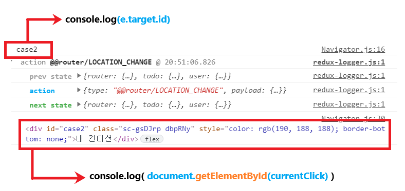 누르면 어떤 이벤트가 생기는지 확인해보기 위해 console.log를 찍어보면 버튼을 누를 때마다 눌린 버튼의 id값을 가진 element 속성이 나타난다.