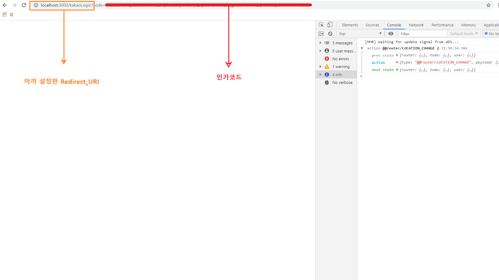 인가 코드가 넘어온 것을 확인할 수 있다.
