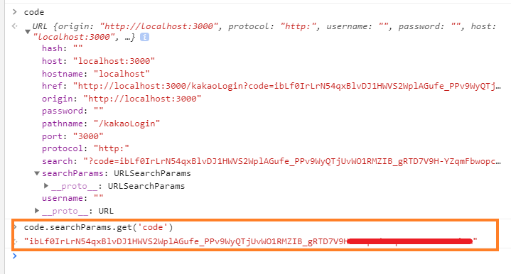 URL 안에 search 파라미터에 들어있는 'code'라는 값을 get 하겠다.