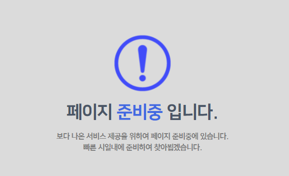 서비스 준비 중 페이지를 제작하였다. 너무 쉽다 보니 편하게 만들었고 의도치 않게 리프레쉬하는 시간이 되었던 것 같다.