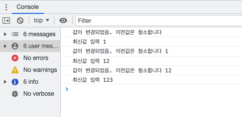 console.log('값이 변경되었음. 이전값은 청소합니다', value);