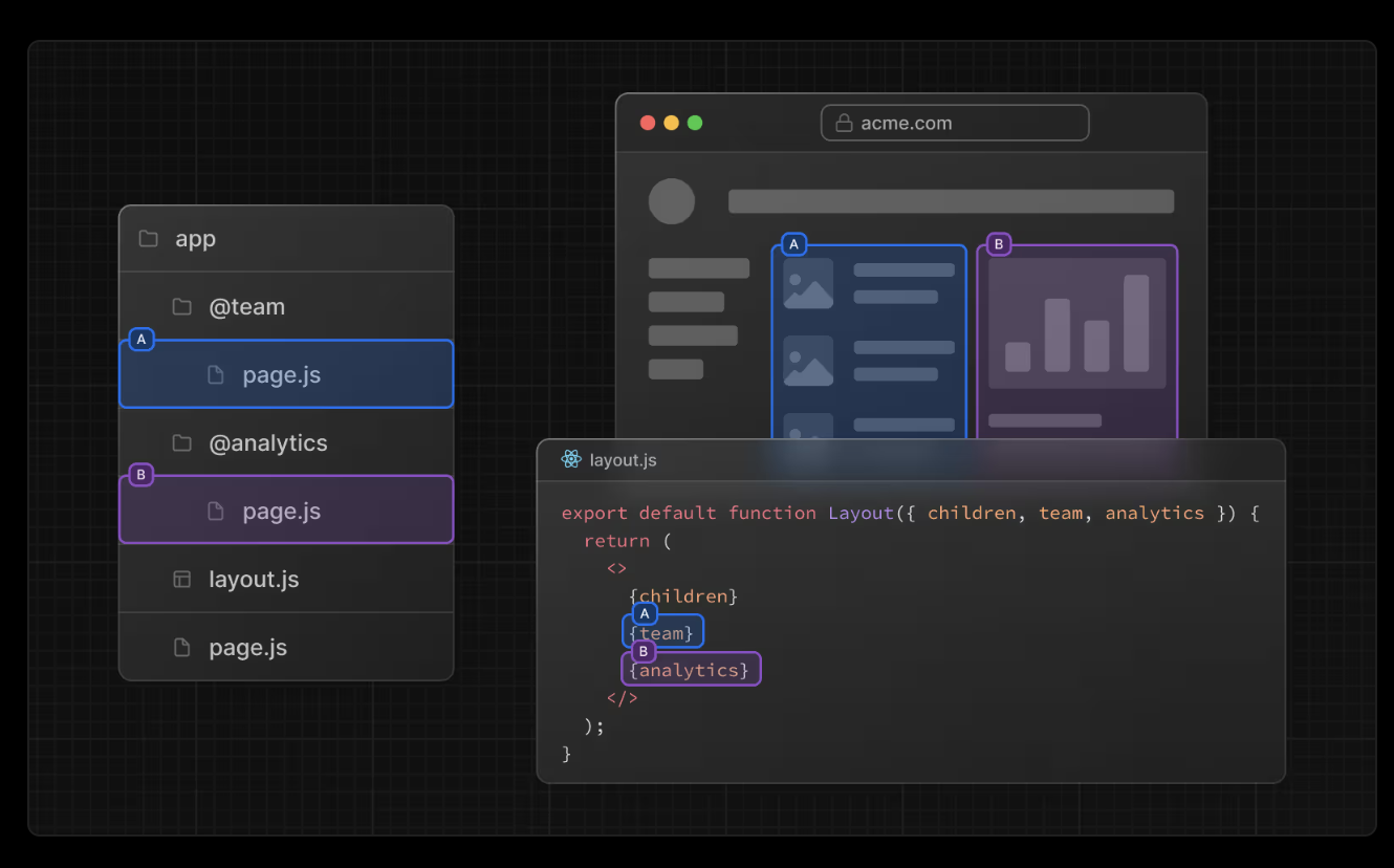 Parallel Routes는 말 그대로 한 화면에서 여러 개의 페이지를 띄울 수 있는 방식이다.
